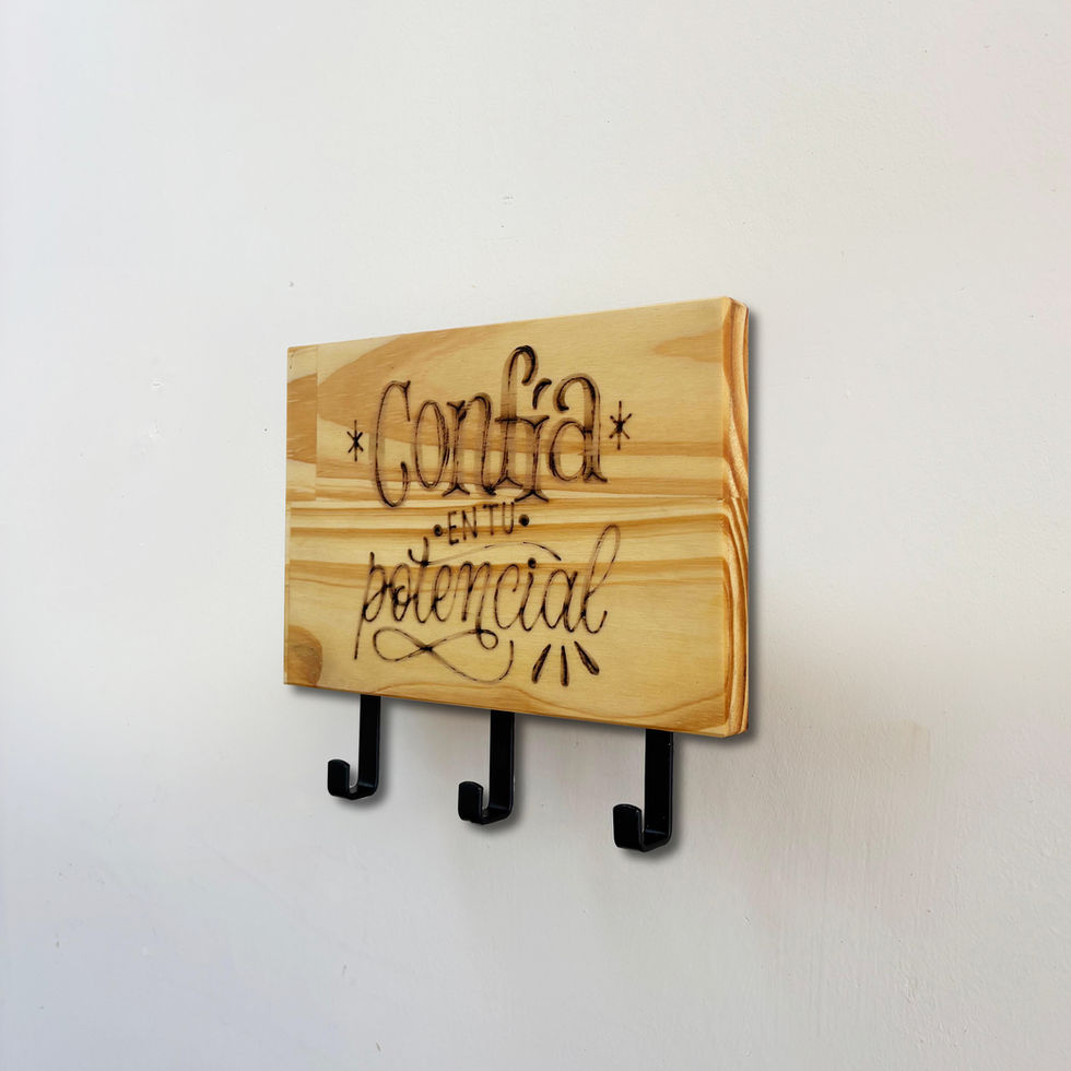 Hechos en madera natural y grabados con frases motivadoras, estos portallaves están pensados para sumar funcionalidad, diseño y buena energía a tu hogar.